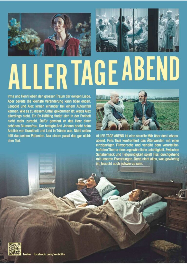 Mit „Aller Tage Abend“ schliessen wir die Film-Reihe von Felix Tissi  und würden uns über einen vollen Kinosaal sehr freuen.